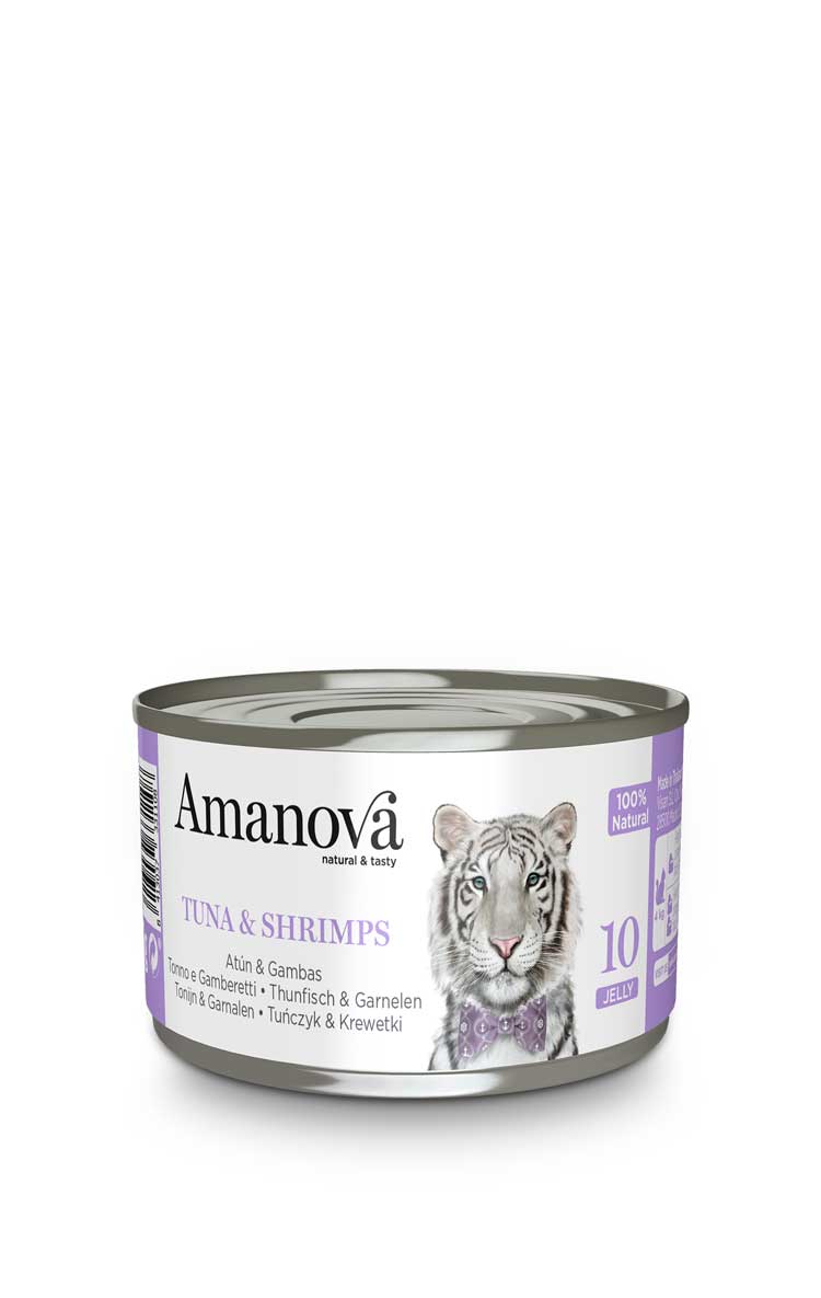 Una receta 100% natural, ideal para gatos amantes del pescado, compuesta por atún barrilete de primera calidad y gambas exquisitas, y es tan deliciosamente nutritiva como si estuviera preparada para ti. Este alimento complementario para mascotas es ideal para ser disfrutado con su alimento completo Amanova y así mantener una dieta saludable y equilibrada. El atún y las gambas son ricos en proteínas y fácilmente digeribles, contienen sales minerales esenciales para fomentar la salud ósea, además de ácidos grasos Omega 3 para una piel y pelaje saludables. Si los gatos pudieran hablar, ¡siempre pedirían Amanova!