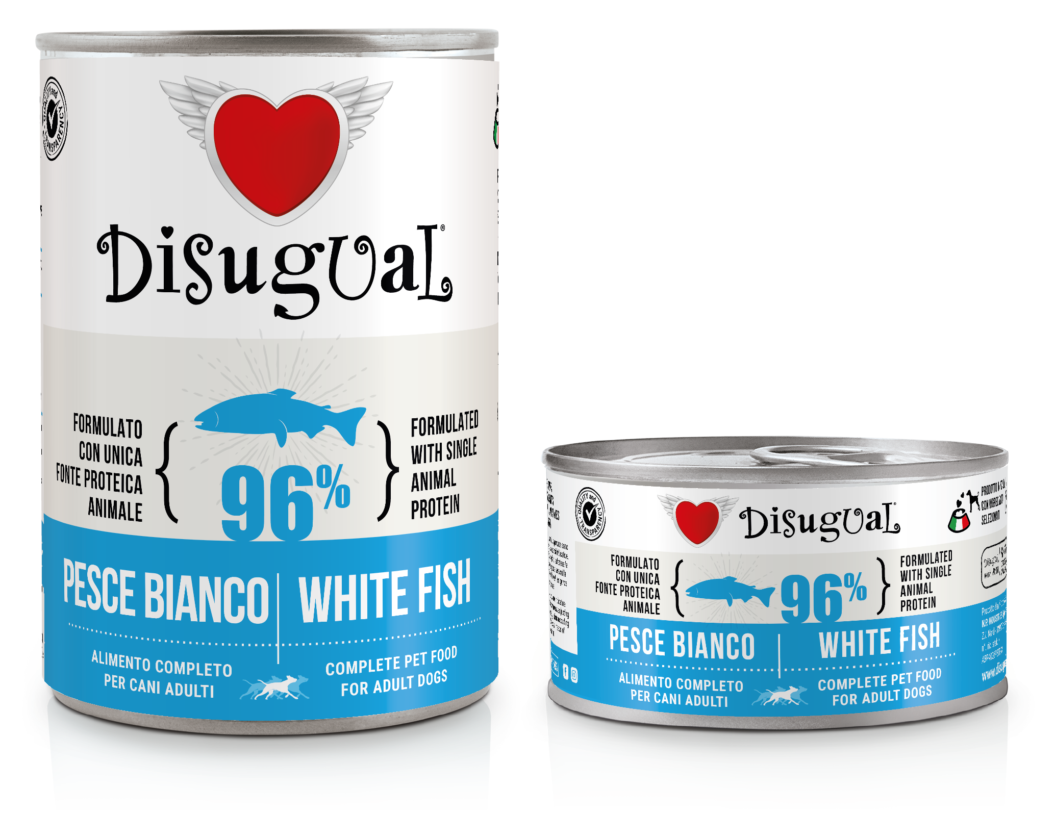 Disugual Lata de pescado blanco Monoproteica es una receta hipoalergénica, muy palatable y perfecta para perros adultos de todas las razas.